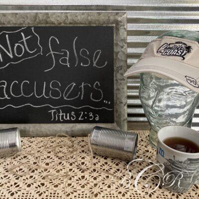 “That the aged men be sober,grave, temperate,sound in faith, in charity, in patienceThe aged women likewise.that they be in behavioras becometh holiness,not false accusers,”Titus 2:2a-3a The old saying, “Sticks and stones may break your bones but words will never hurt you.” is a down-right lie. Words do hurt. Mean, thoughtless, unkind, words hurt bad, deep down, and for a long time. They break ...